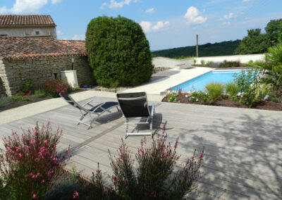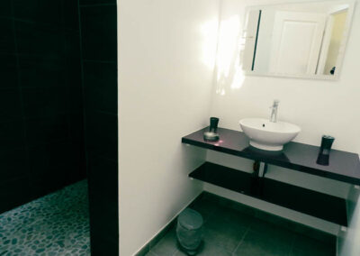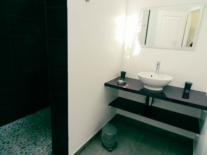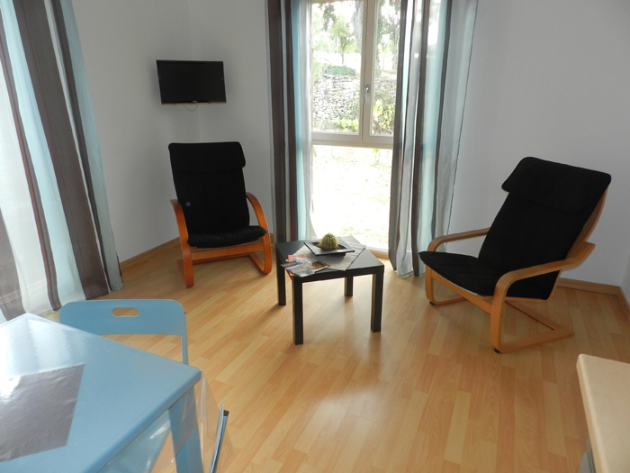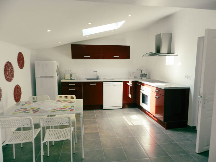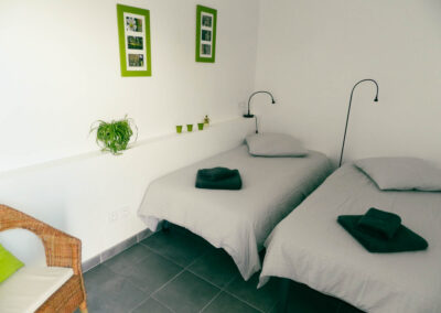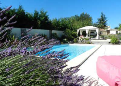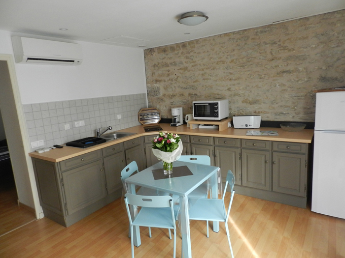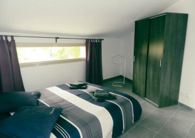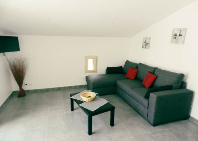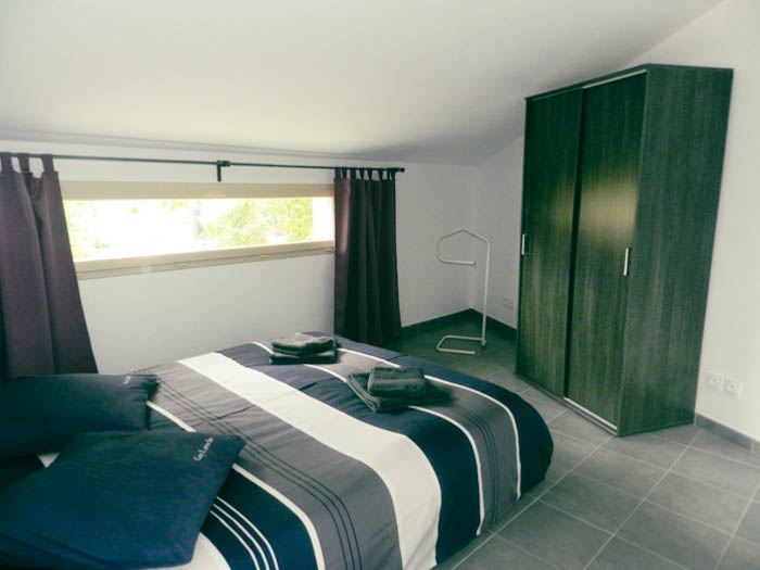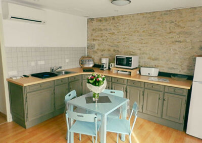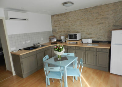 Gîte de 55 m2 pour 2 à 4 personnes. Il se compose d’une cuisine toute équipée ouverte sur le salon, d’une grande chambre double avec vue sur la piscine, d’une salle d’eau avec douche à l’italienne et d’une buanderie/WC. Il dispose également d’une seconde chambre indépendate (2 lits séparés) avec salle d’eau et WC.